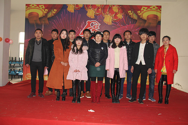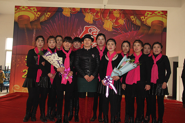 安徽豹子頭服飾有限公司總經理曹群與2015年年會職工演員合影