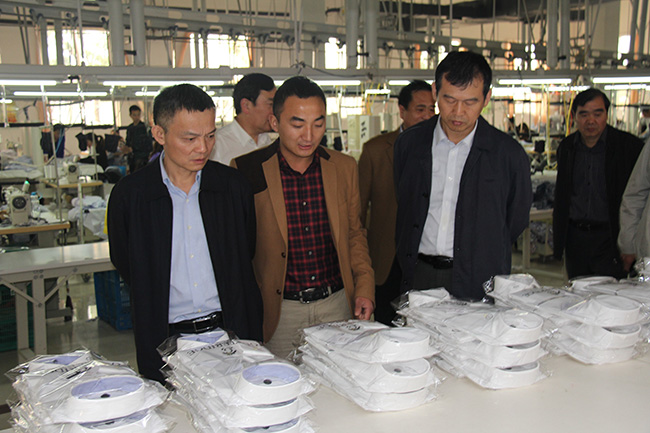 阜陽市操市長與人大王主任到安徽豹子頭服飾有限公司視察