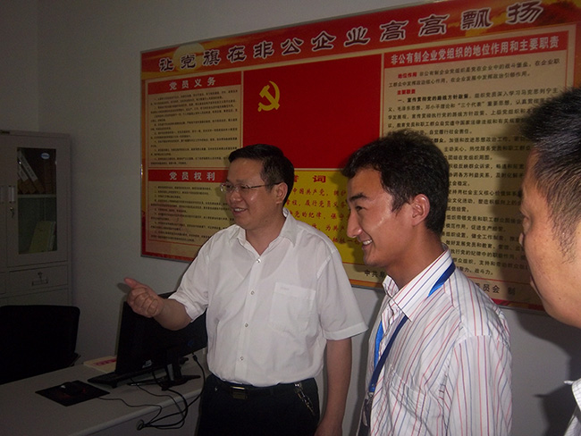阜陽市組織部長到安徽豹子頭服飾有限公司檢查指導黨建工作